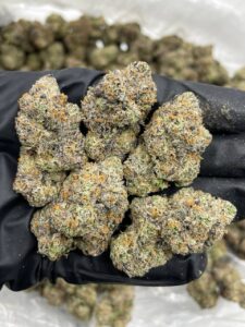 Unique mix of creamy chocolate terps and Zkittlez candy nose on this bag 🔥 vibrant mix of purple and lime green color on big sticky round nugs 💣